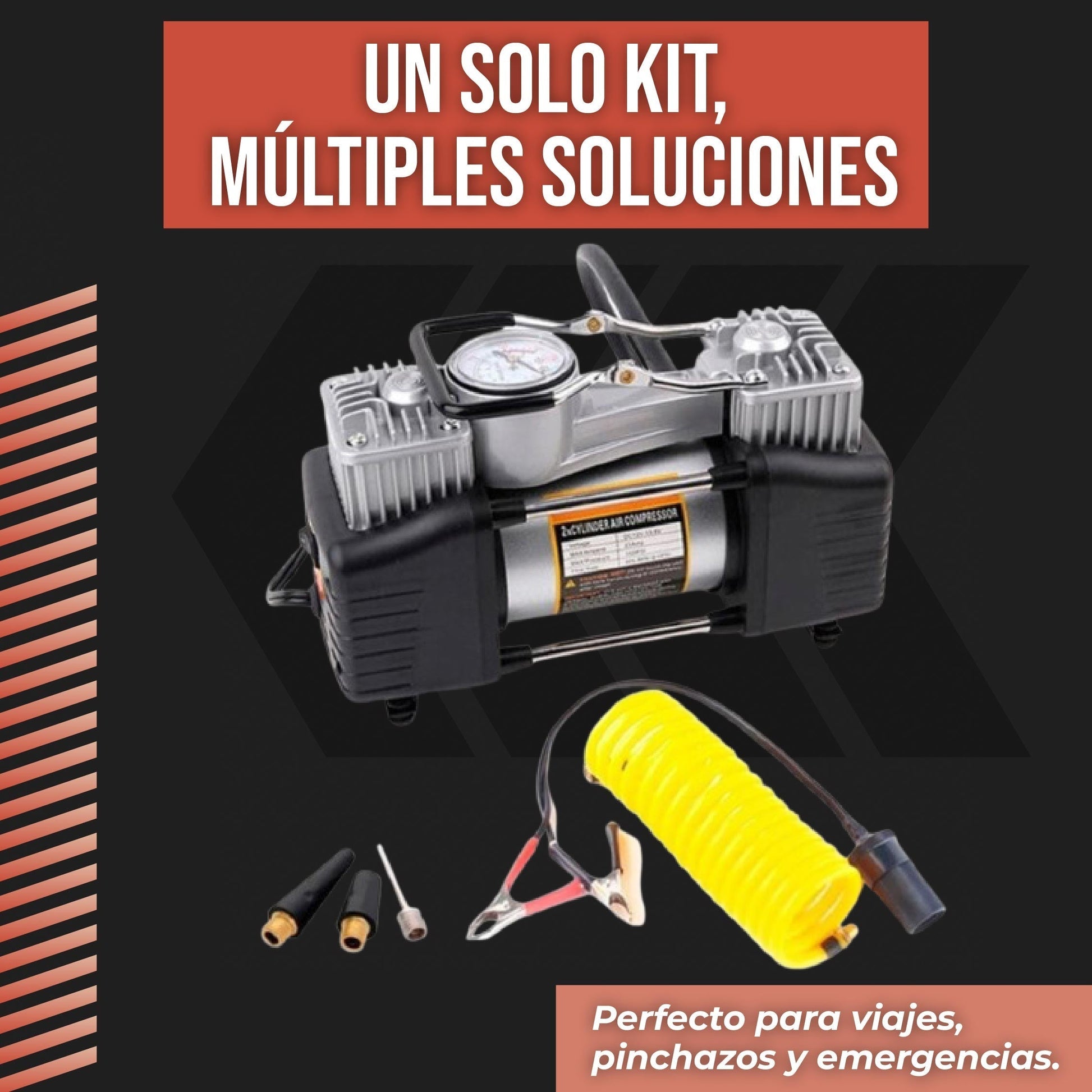 Con este Compresor de Aire Doble Cilindro portátil, eso se acabó.